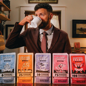 Learn how to choose the right caffeine level for your day, from chill 0% decaf to 100% rocket fuel. Control your buzz with Control Freak.